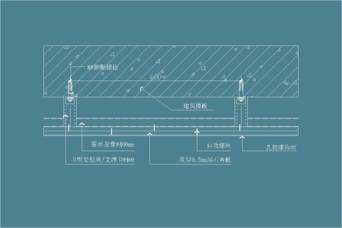 石膏板吊顶-U型安装夹-覆面龙骨-吸顶式吊挂吊顶