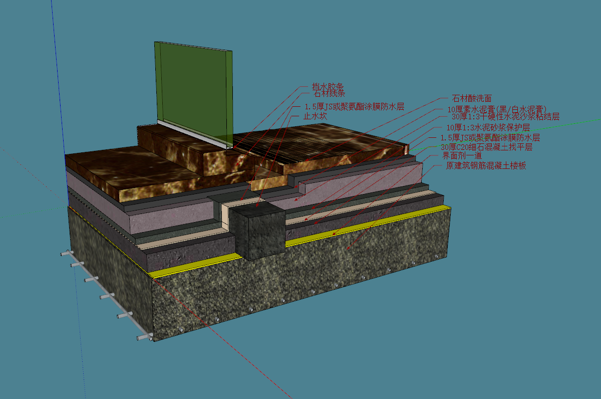 2.地漏处下水方向的防水处理必须做好灌浆加实