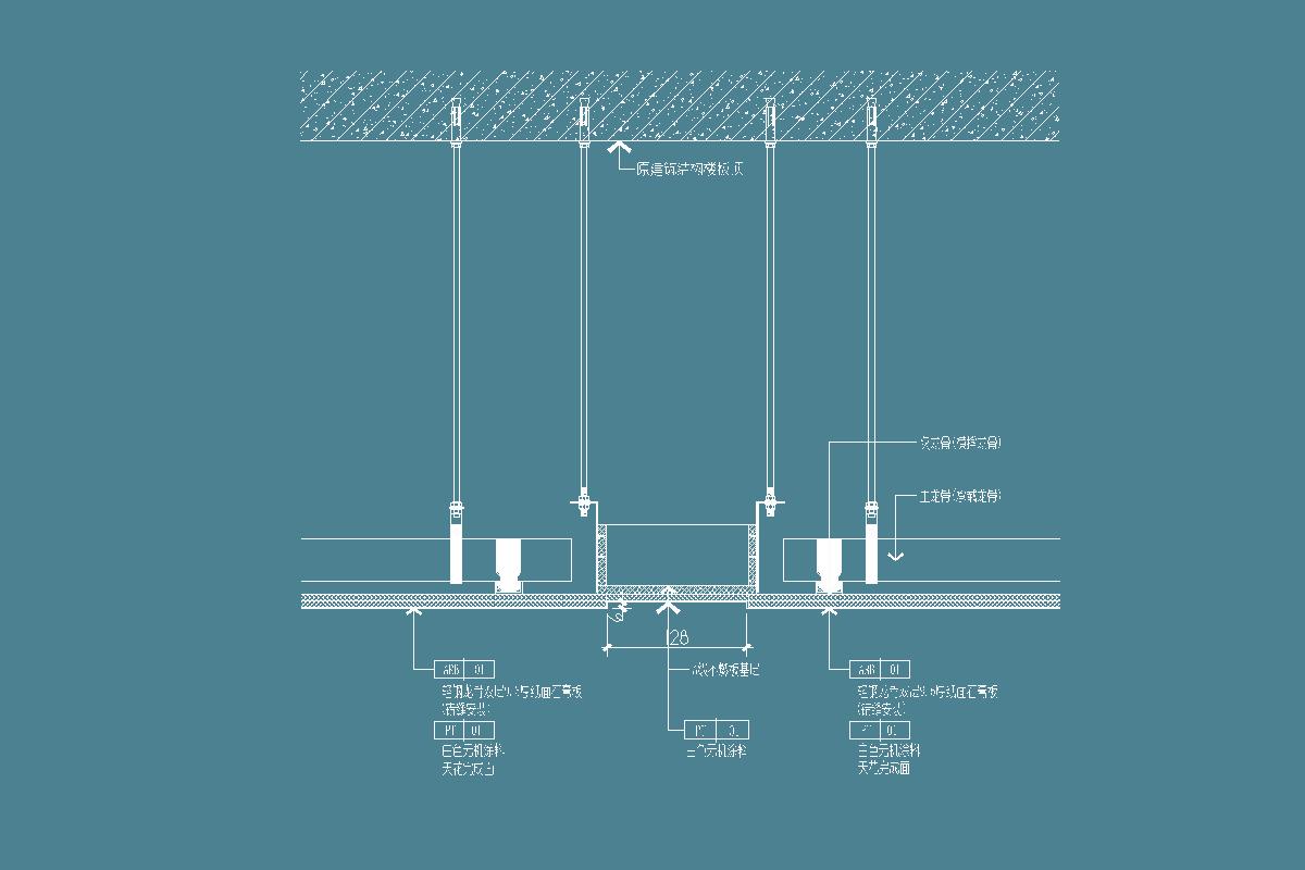 吊顶设备带造型节点-主龙骨-次龙骨-轻钢龙骨石膏板-不燃基层板-涂料-设备带