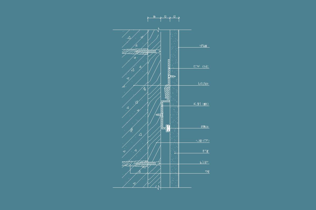 砌块墙-卡式龙骨-木饰面-横剖节点详图