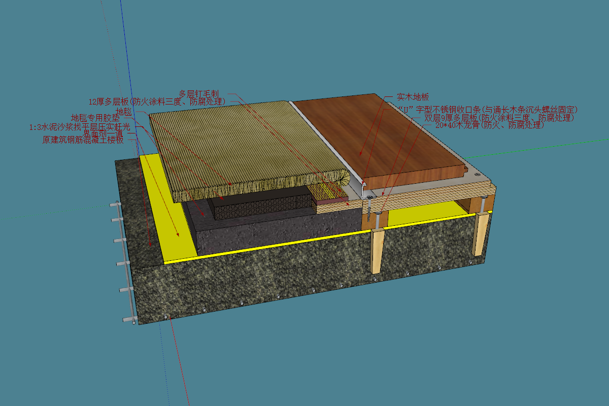 4、12厚多层板(防火涂料三度、防腐处理)