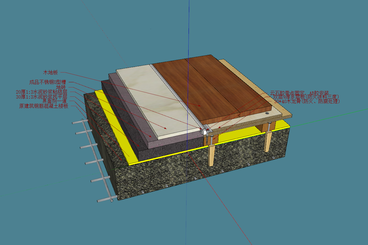 木地板-多层板-成品不锈钢U型槽-云石胶带点固定,AB胶安装-防火涂料三度、防腐处理-1:3水泥砂浆-地砖-界面剂-木龙骨-地坪节点剖面详图 积木 2026-03-20 地面节点 33 推广 资源下载下载价格2 筑匠币VIP免费立即购买 0 0